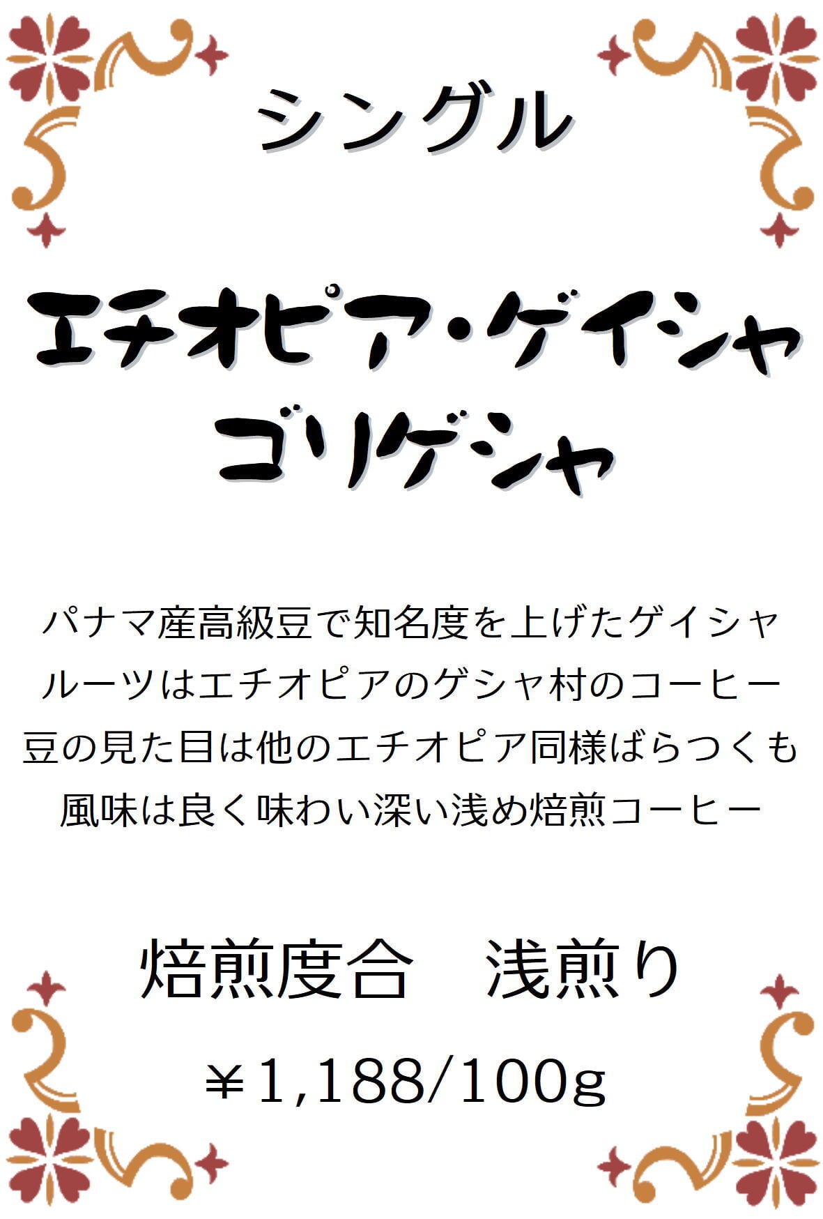 ・エチオピア ゲイシャ ゴリゲシャ 100g