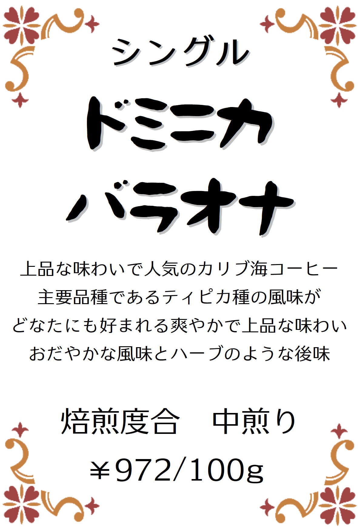 ・ドミニカ バラオナ 100g